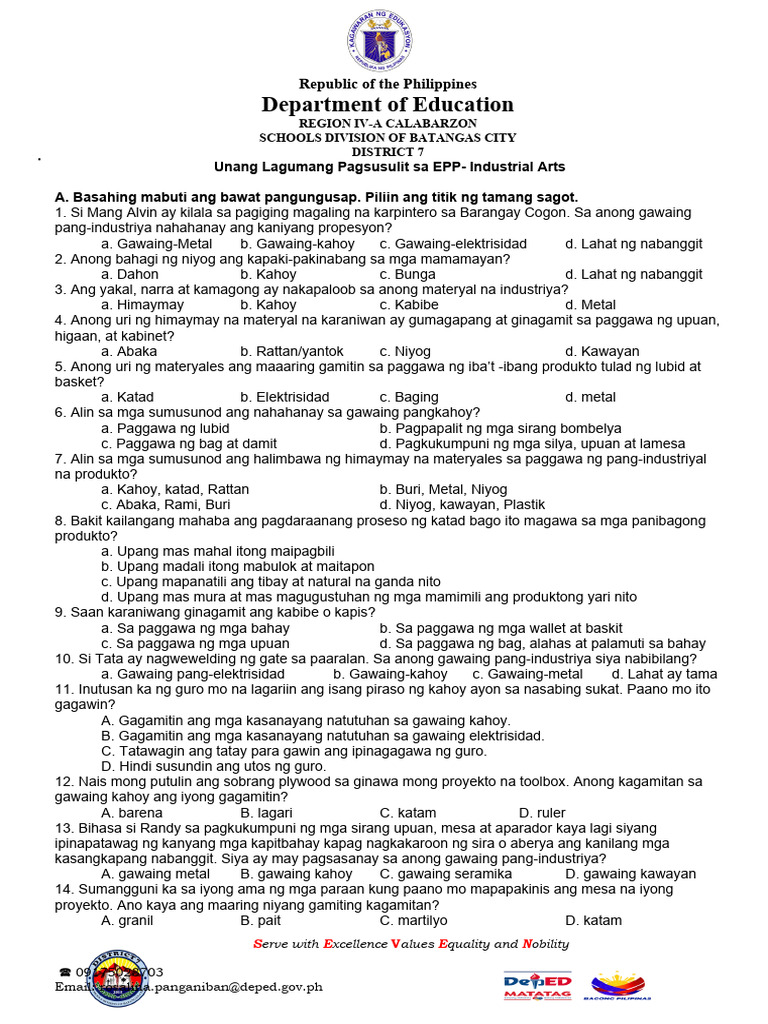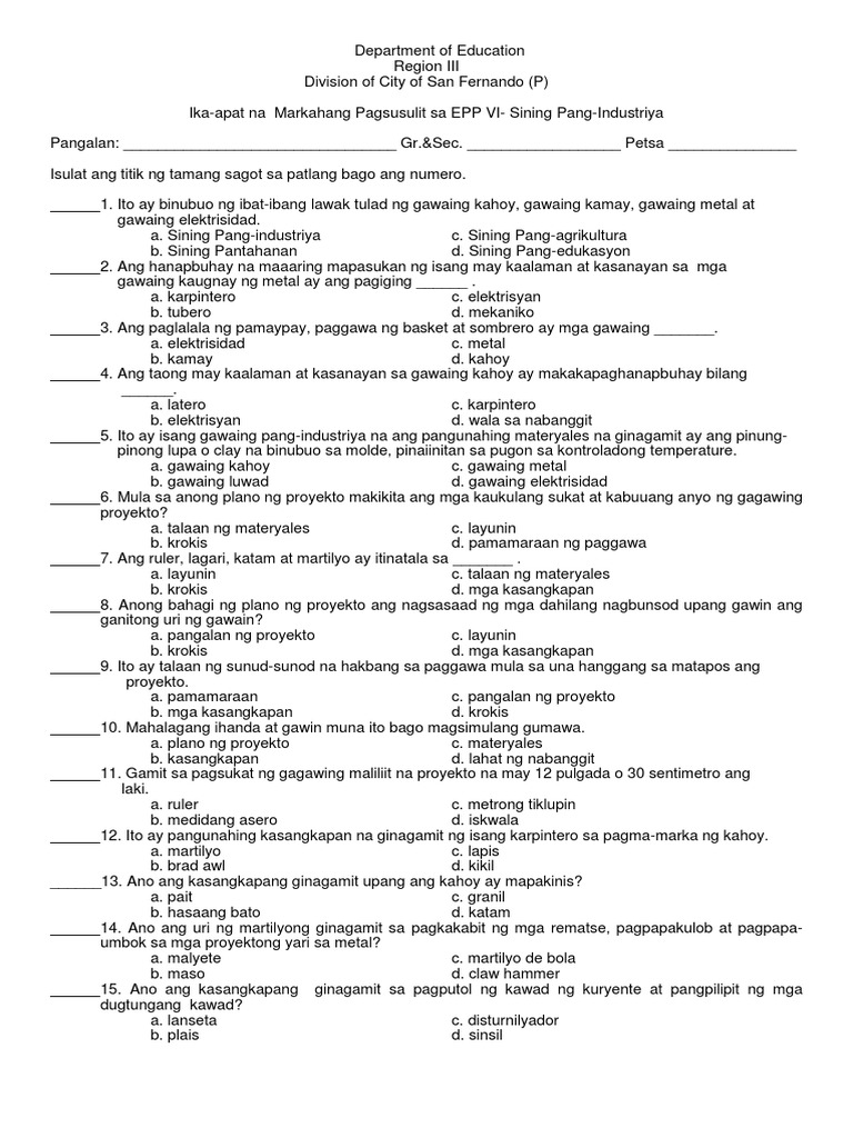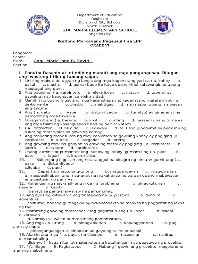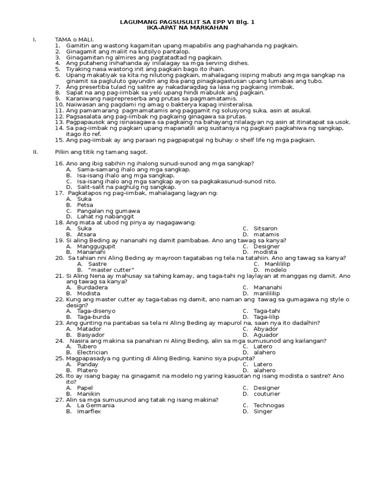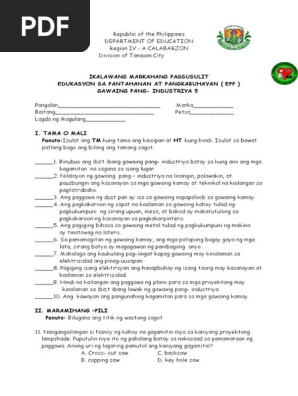 Unang Lagumang Pagsusulit sa EPP | PDF