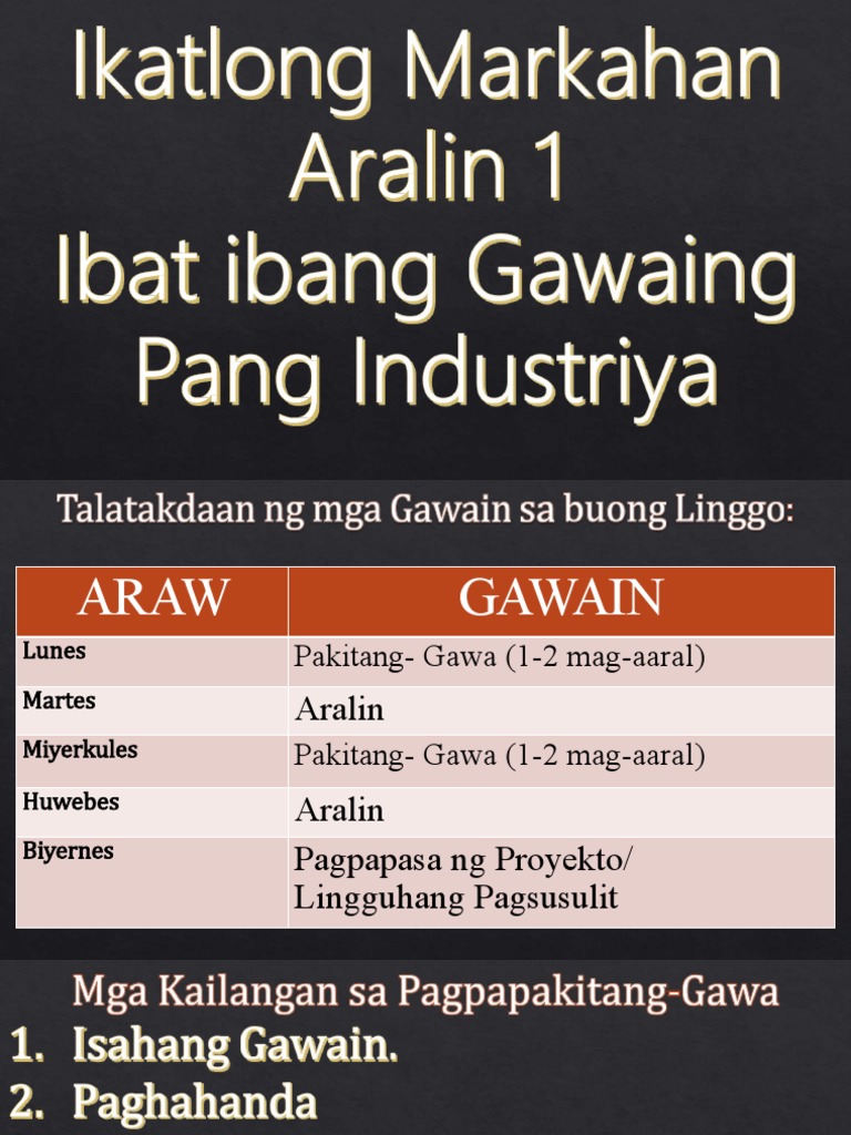 Ano ang mga halimbawa ng mga gawaing pang indutriya - Brainly.ph