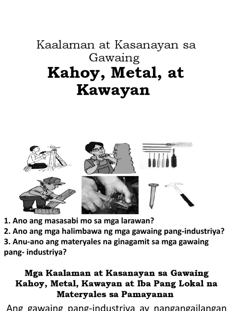 Mga Kaalaman Sa Gawaing Kahoy, Metal, Kawayan at Iba Pang Lokal Na Materyales Sa | PDF