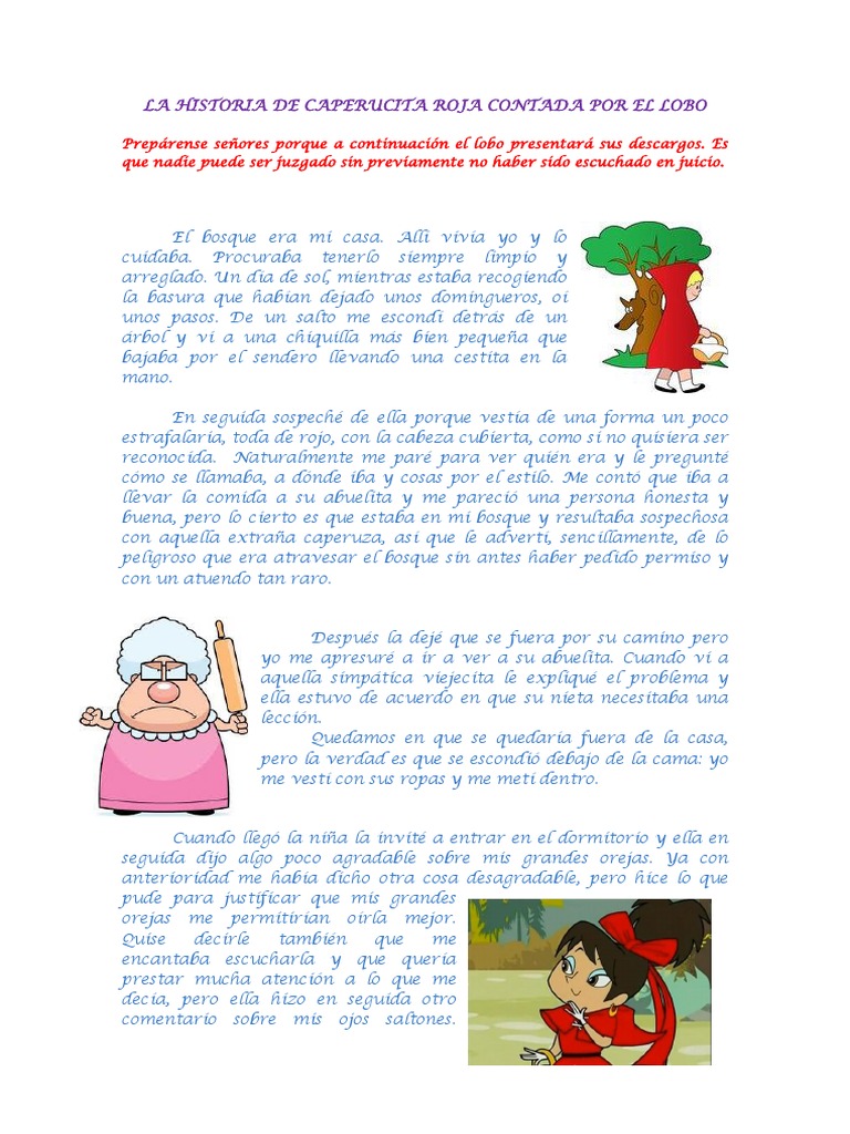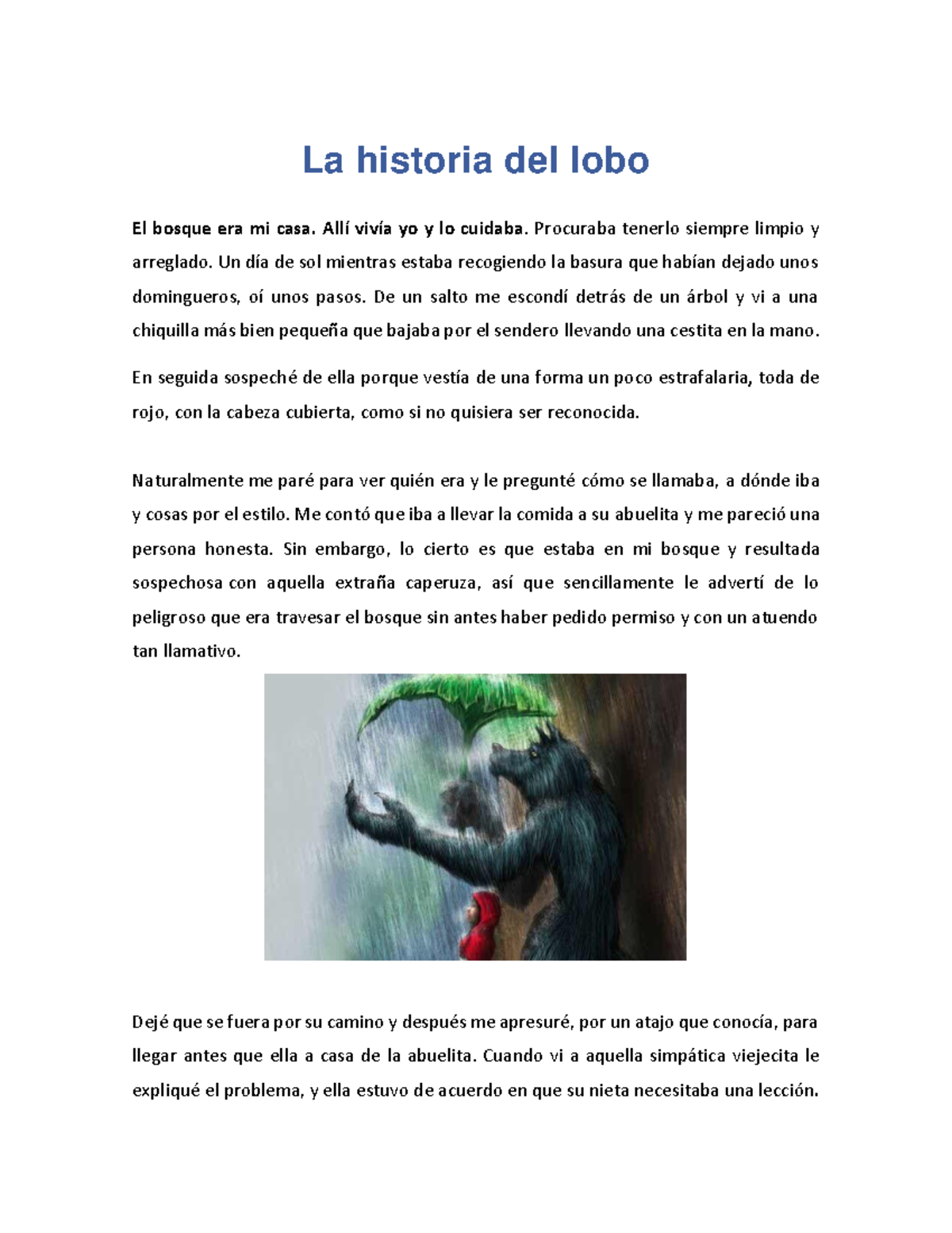 La Historia de Caperucita Roja Contada Por El Lobo | PDF ...