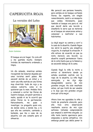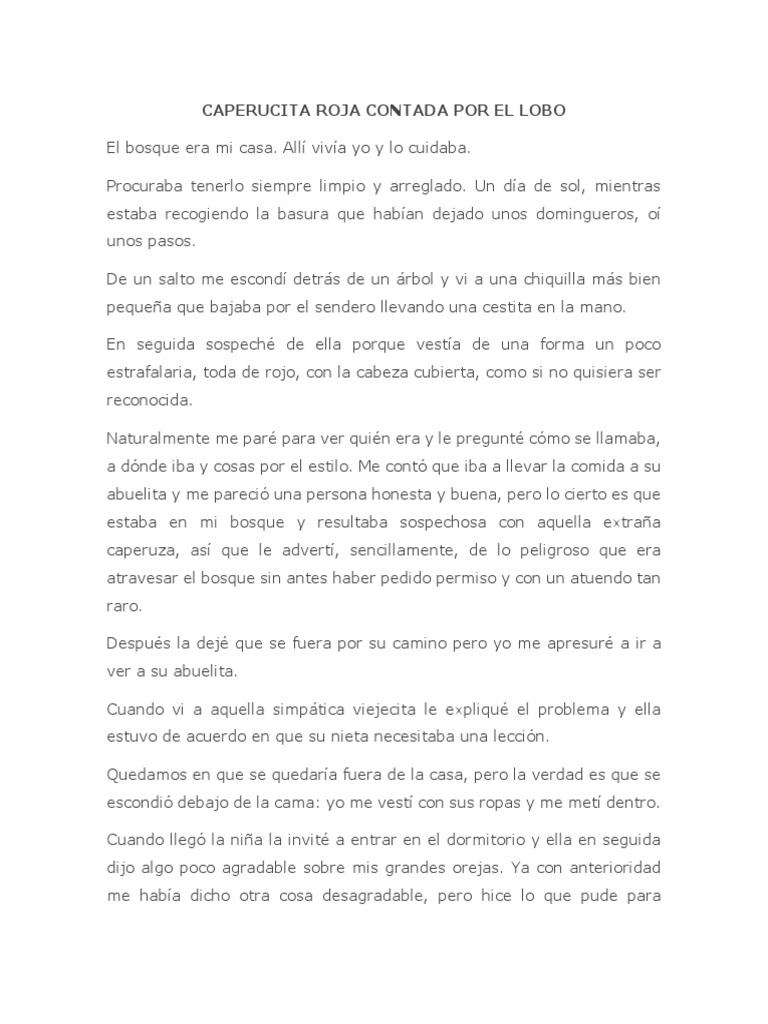 Caperucita Roja Contada Por El Lobo | PDF | Caperucita Roja | Lobo ...