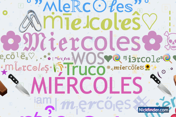 Nicknames for Miercoles: WOS, DIVERTIDO, Truco, Miércoles 🌼, ꧁☠✿ 𝔐𝔦𝔢𝔯coles✿☠꧂