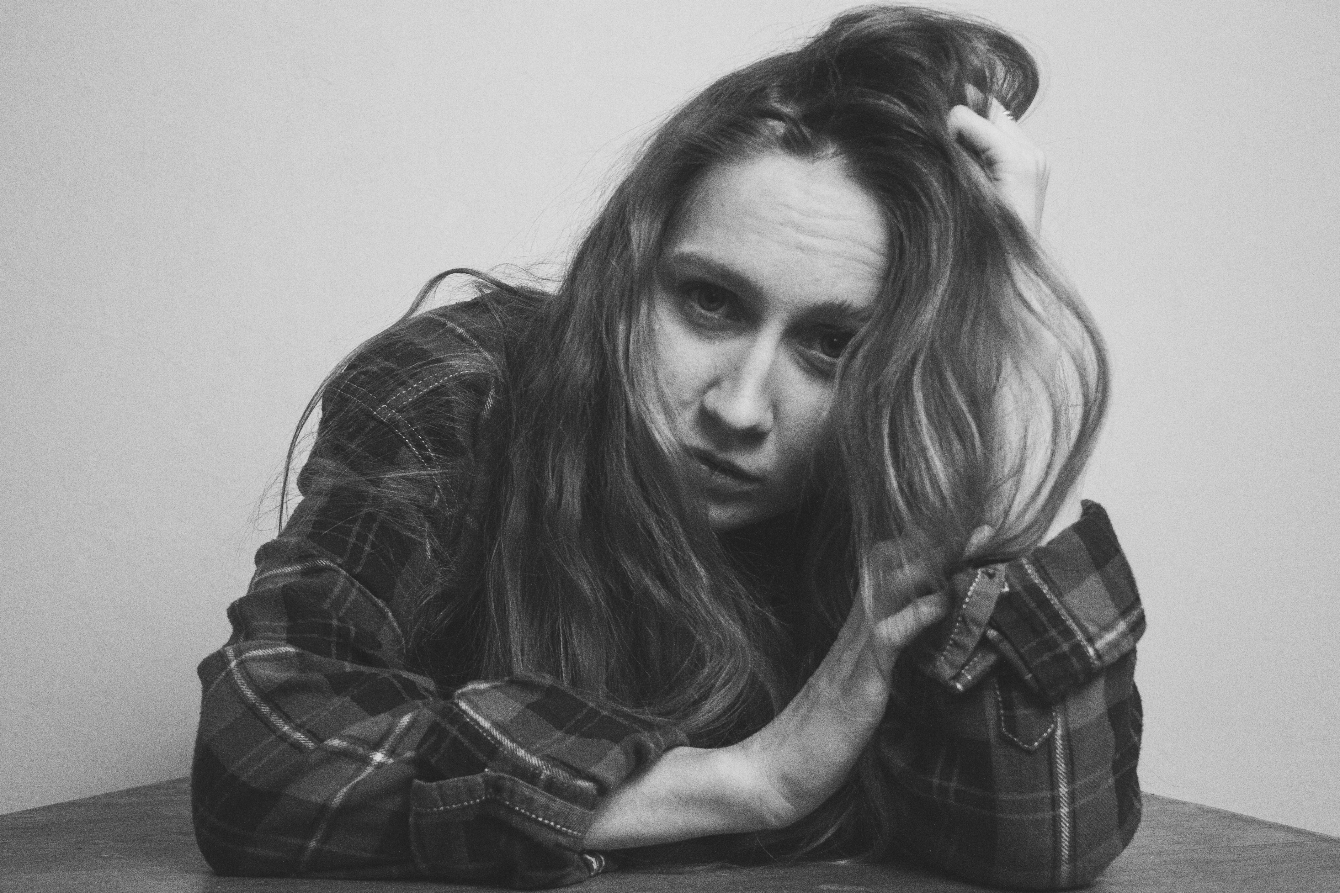 Fondos de pantalla : cara, mujer, monocromo, modelo, pelo largo, fotografía, Cabello negro, cabello, emoción, cabeza, niña, belleza, ojo, oscuridad, Sentido, en blanco y negro, Fotografía monocroma, Fotografía de retrato, Sesión de