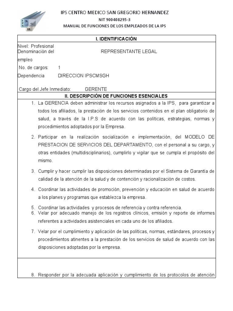 MANUAL DE FUNCIONES Y SELECCION DE TALENTO HUMANO IPSCMSGH Sena | PDF | Historial médico | Hospital