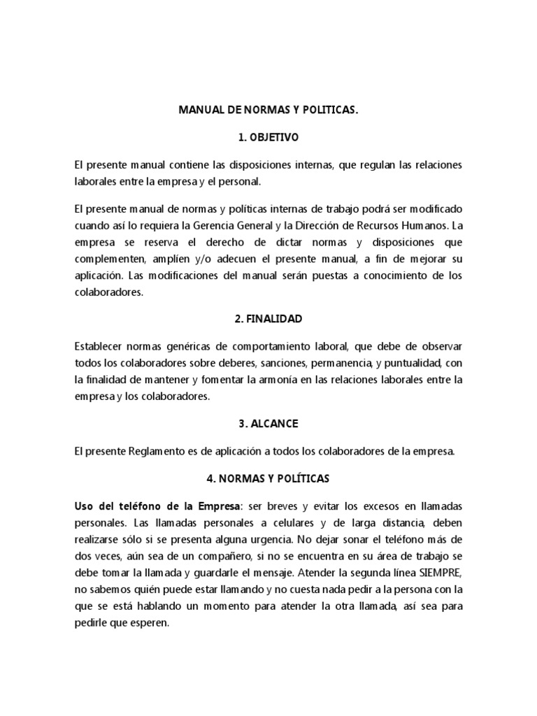 Manual de Normas y Políticas.docx | PDF | Gestión de recursos humanos | Business