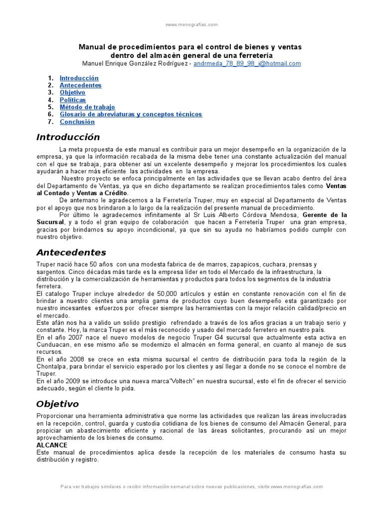 Manual Procedimientos Control Almacen Venta Mostrador Ferreteria | PDF | Monedas de los Estados Unidos | Monedas de América del Norte