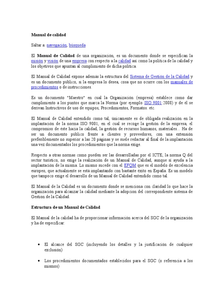 Manual de Calidad | PDF | Gestión de la calidad | Calidad (comercial)