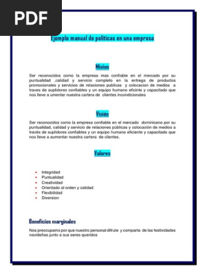 Ejemplo Manual de Politicas en Una Empresa PDF | PDF | Gestión de recursos humanos | Business