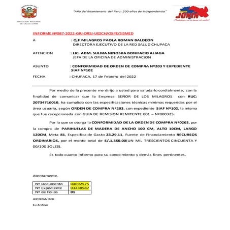 Modelo de conformidad de orden compra 2022 | PDF