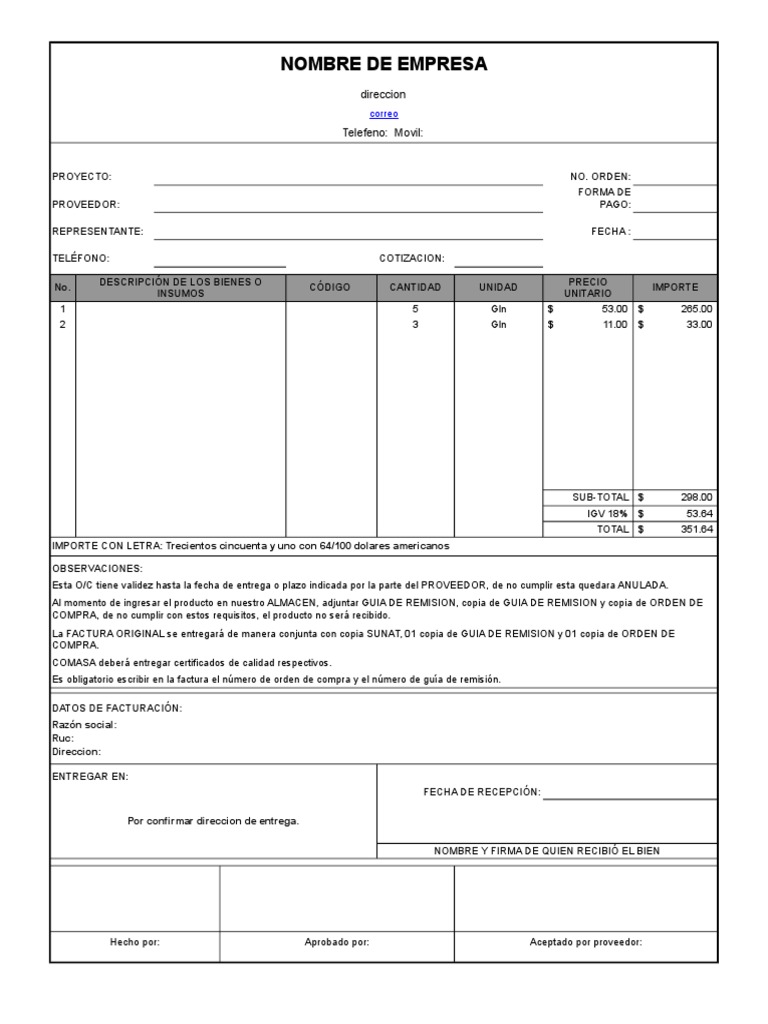 Formato Orden de Compra | PDF