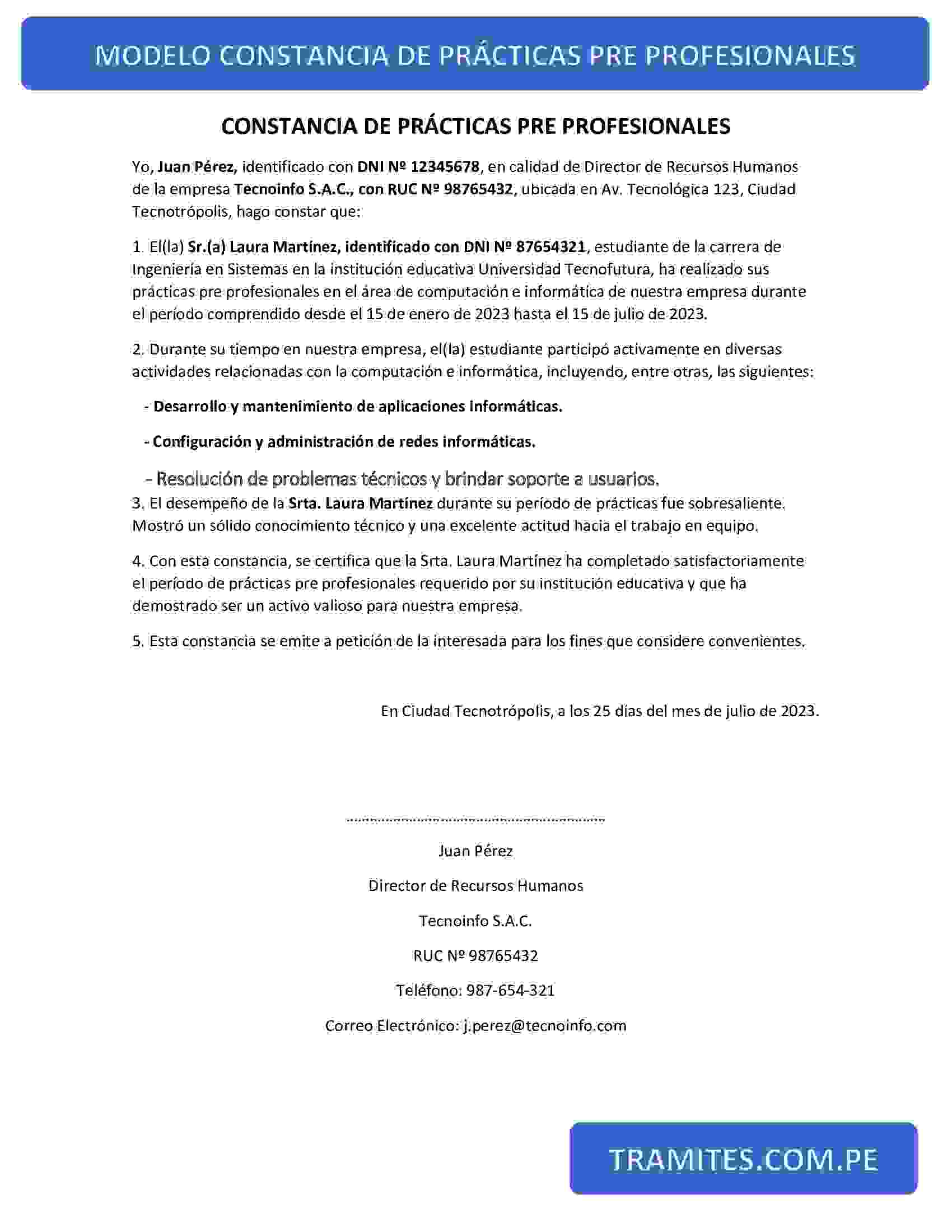 Modelo de constancia de prácticas pre profesionales de computación e informática
