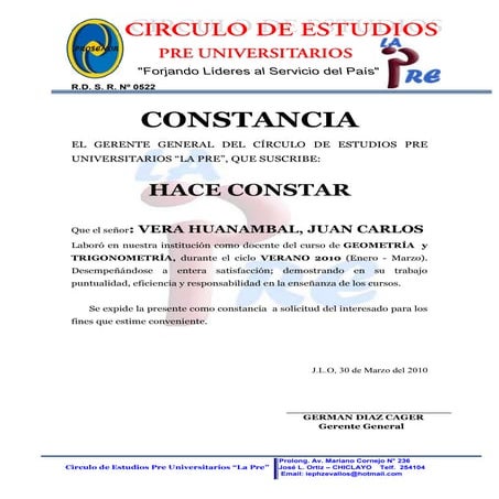 Constancia academia la pre | PDF