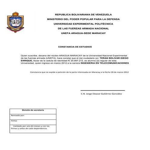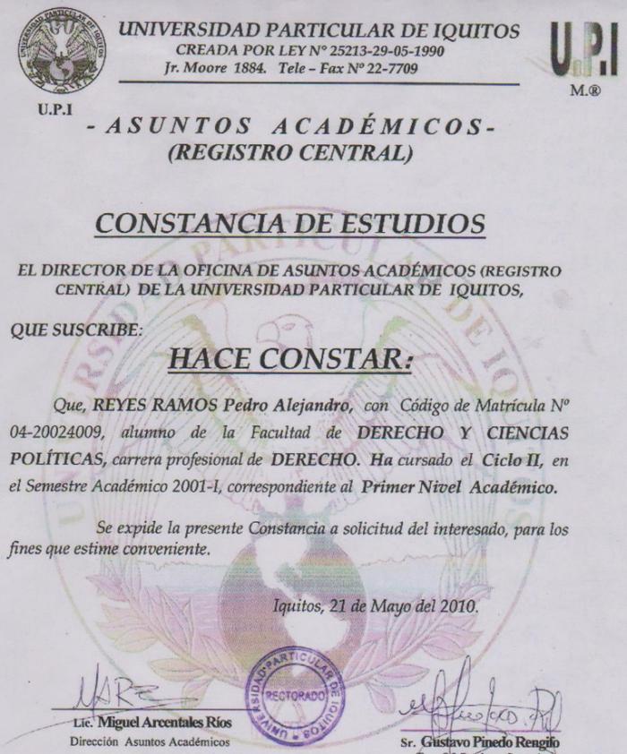 Modelo de certificado de estudios universidad