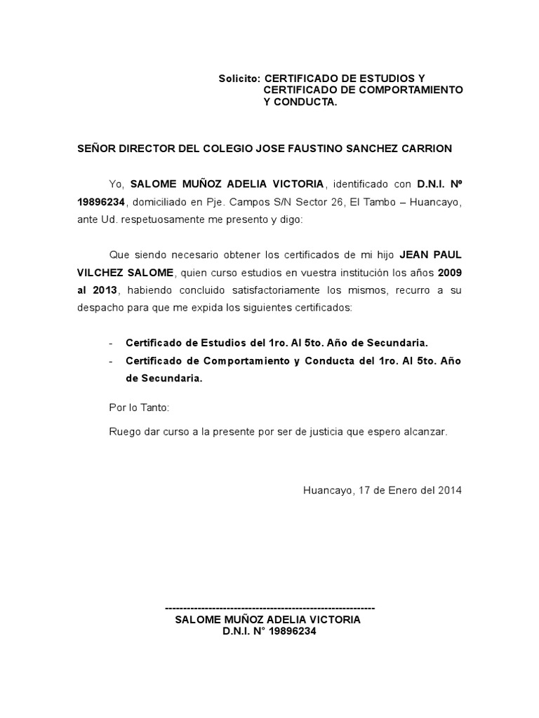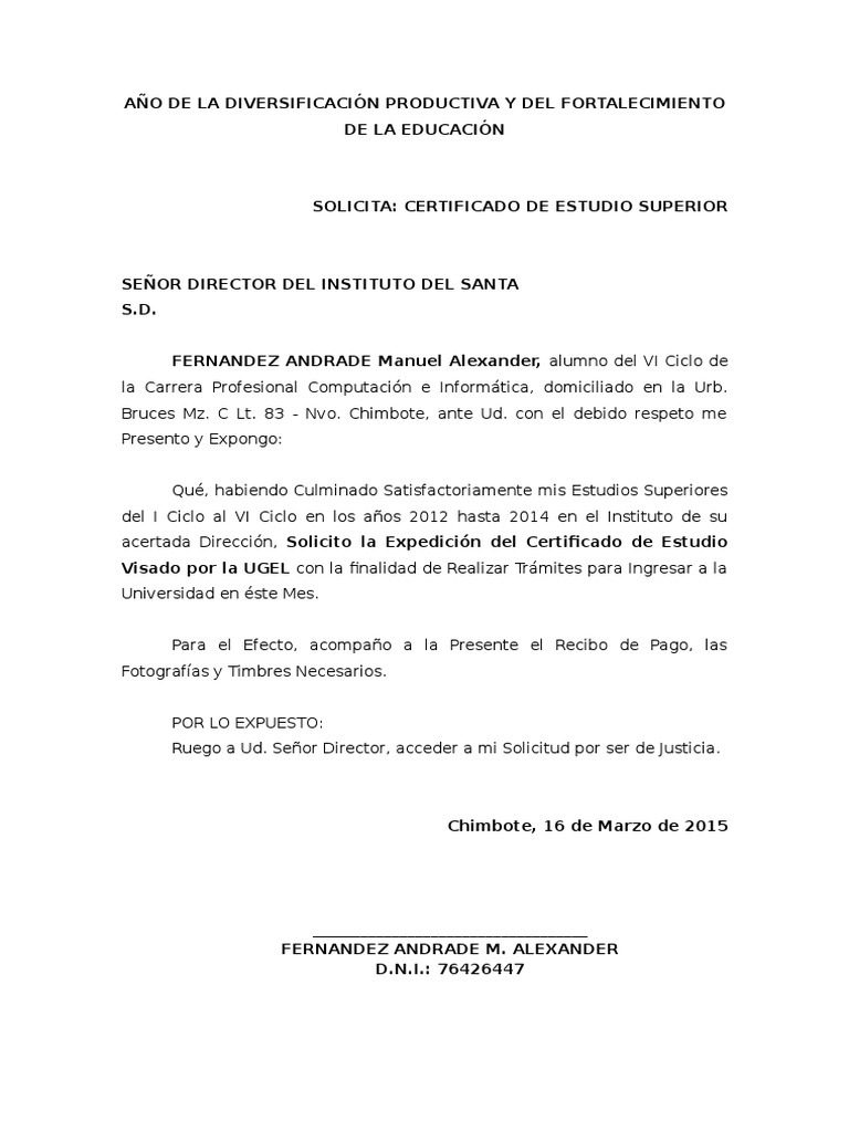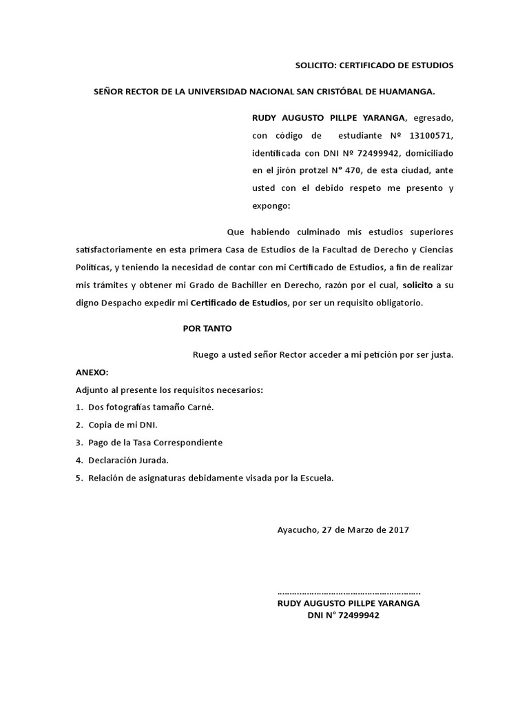Modelo de Solicitud de Certificado de Estudio | PDF