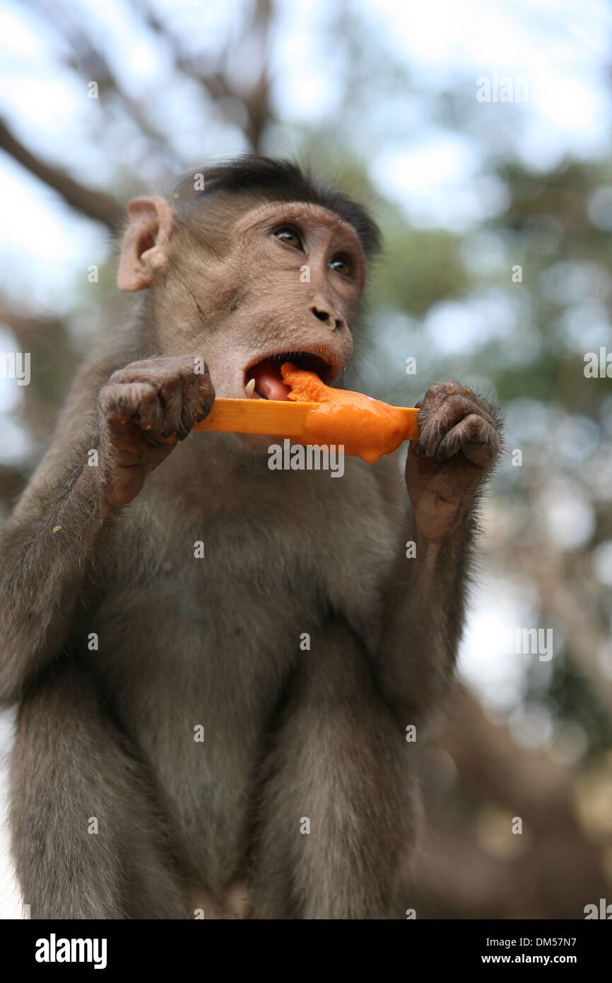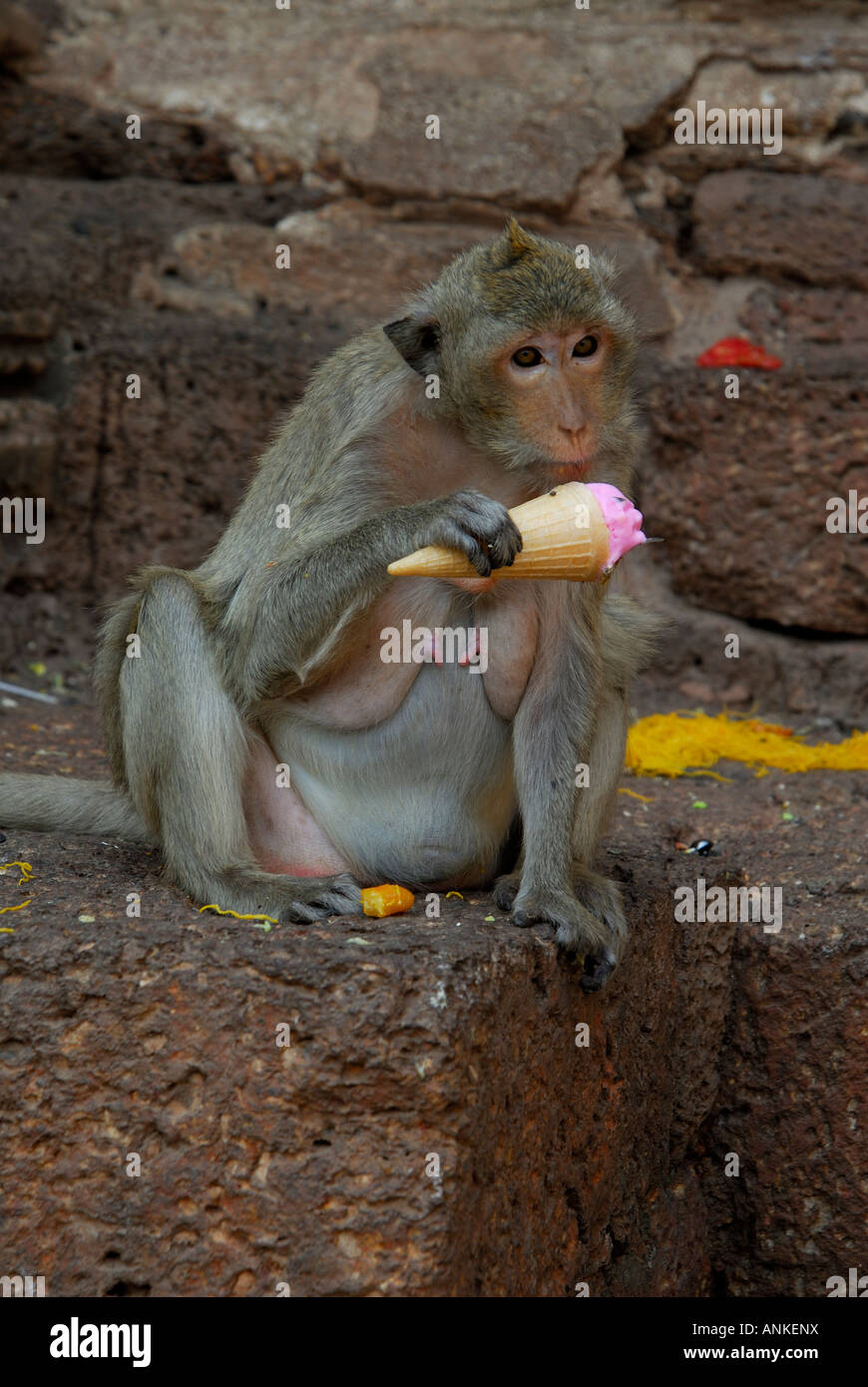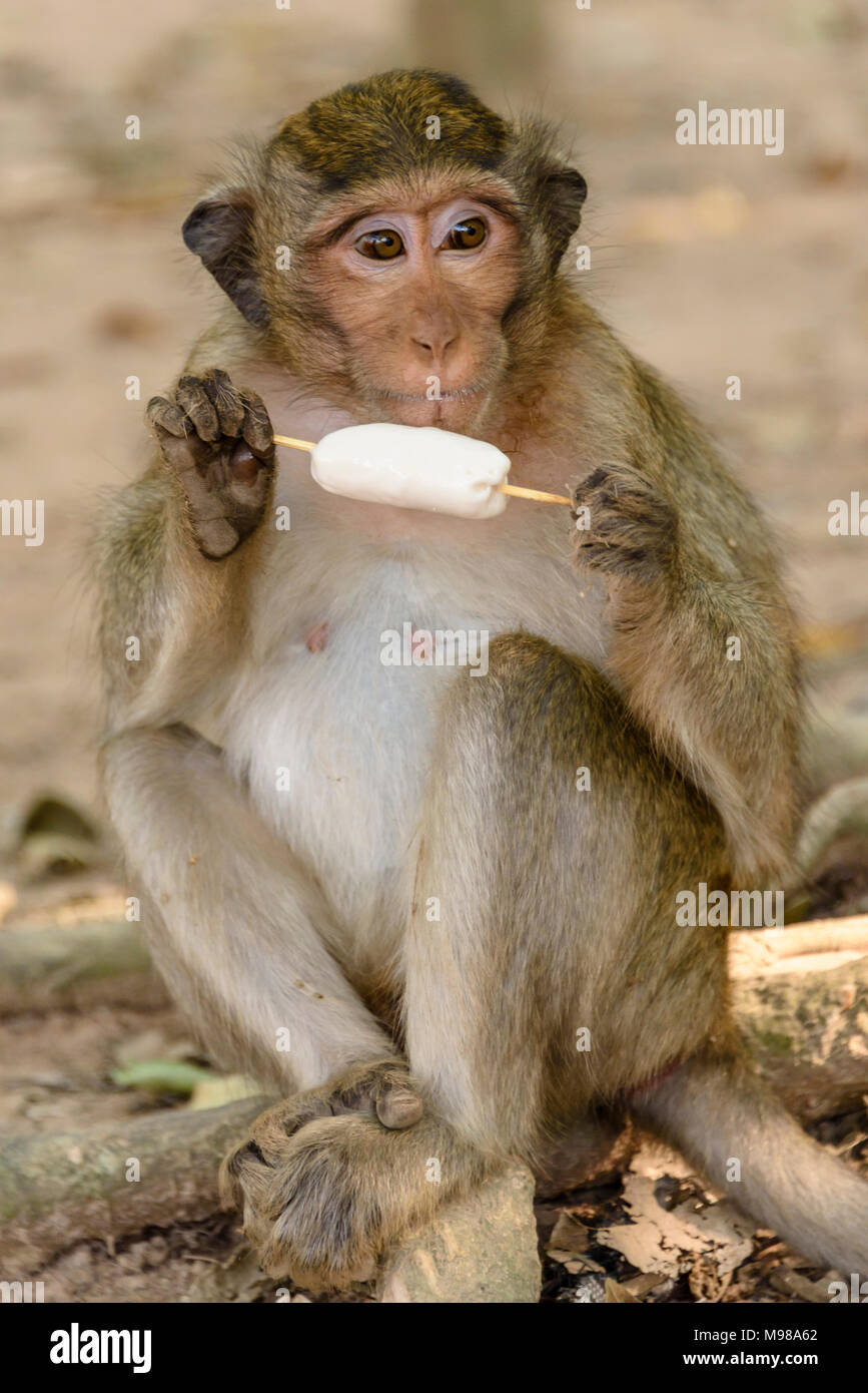 Mono Macquaqe come un helado que nos fue dada por un turista, Siem Reap, Camboya Fotografía de stock - Alamy