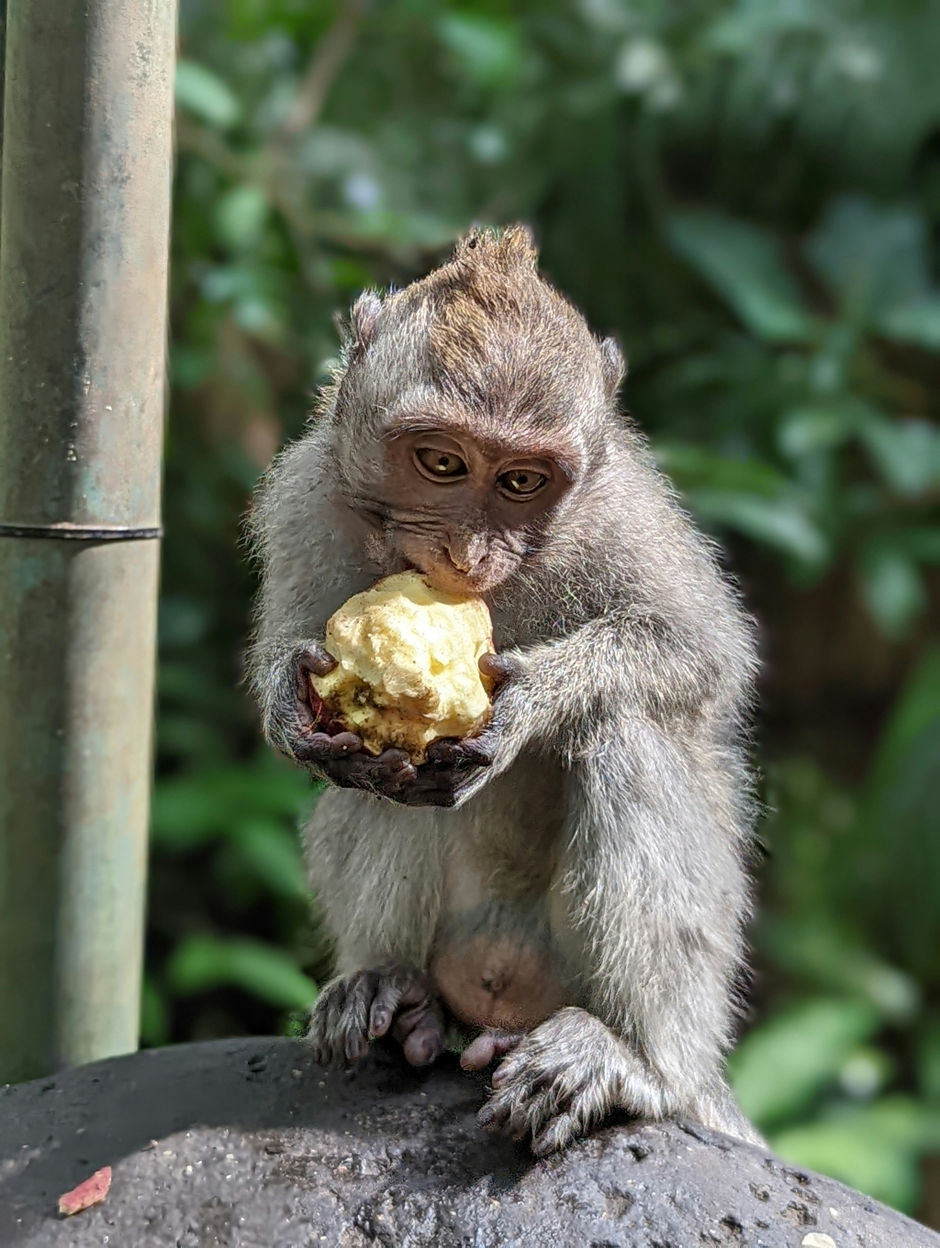 Foto Un mono comiendo un plátano encima de una roca – Imagen Indonesia gratis en Unsplash