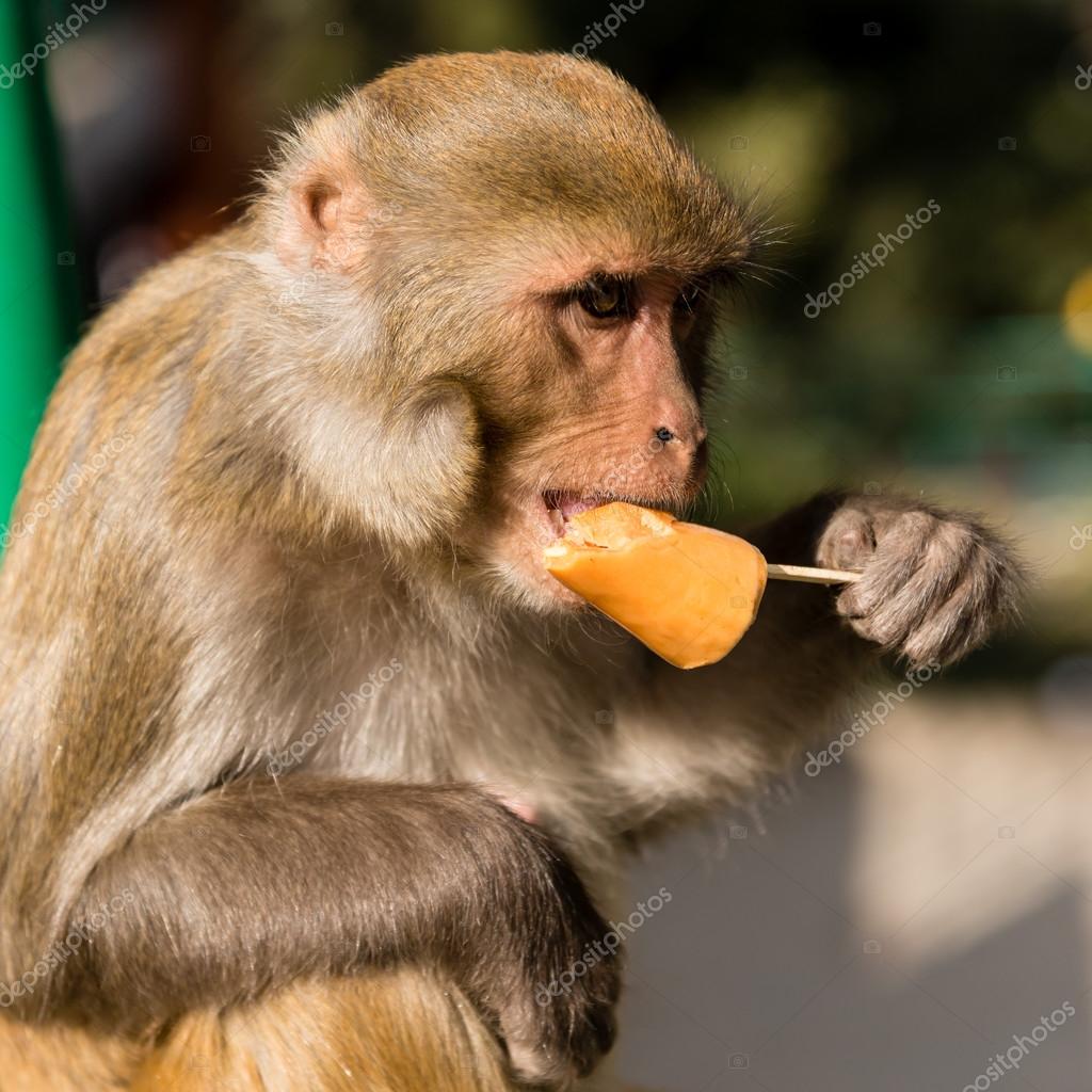 Cierre De Un Mono Comiendo Helados Mientras Está Sentado. Fotos, retratos, imágenes y fotografía de archivo libres de derecho. Image 63812510