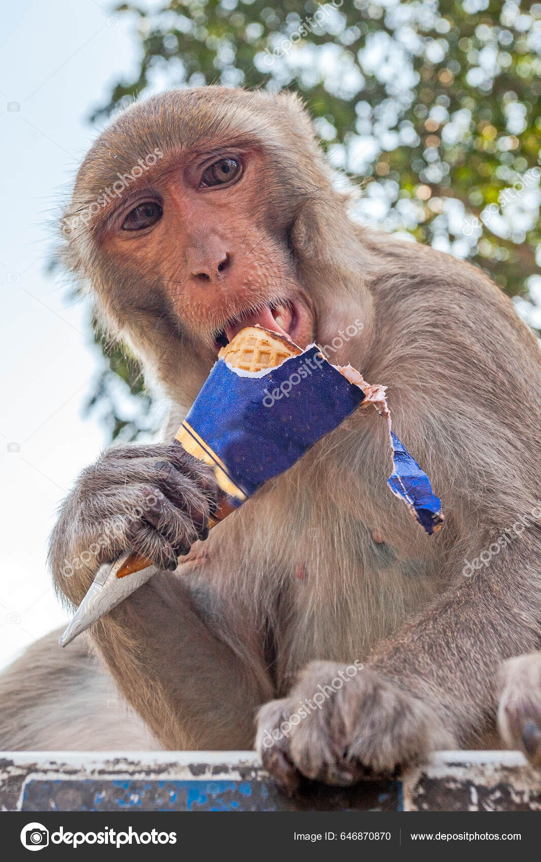 Curioso mono callejero comiendo helado en Foto de stock 2278282711 | Shutterstock