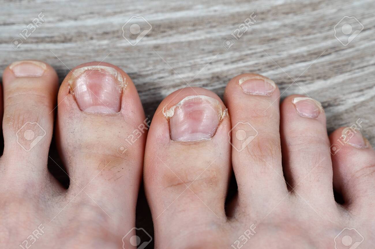 Dedos De Los Pies Sucios Con Pelo Y Uñas Encarnadas Rotas. Callos Y Piel Seca En Los Dedos De Los Pies. Pedicura Médica. Tratamiento De Hongos En Las Uñas Fotos, retratos, imágenes