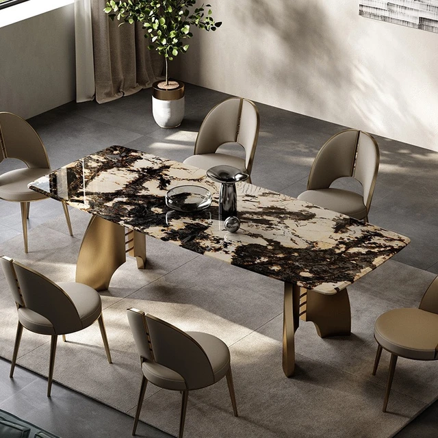 Mesa de comedor de piedra de lujo, muebles italianos minimalistas, Villa moderna, mármol para el hogar - AliExpress