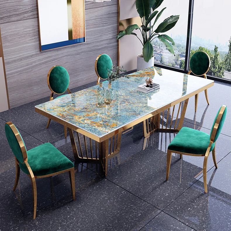 El italiano moderno de lujo juego de mesa de comedor de mármol natural Inicio Inicio de acero inoxidable Muebles de Comedor mesas y sillas de comedor rectangular - China Mesa de comedor