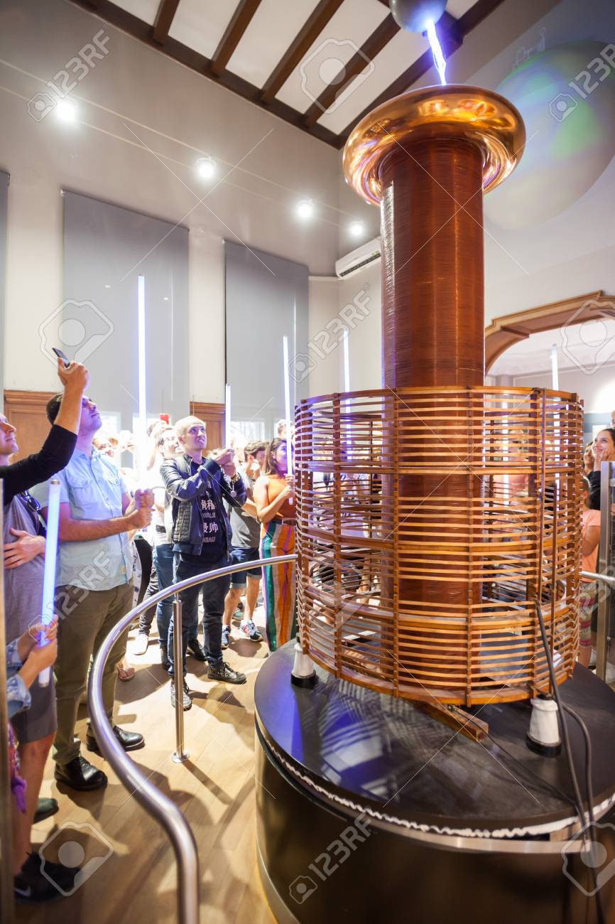 BELGRADE, Serbia - 5 Sept: Tourists Take Part In A Tesla Coil Demonstration At The Nikola Tesla Museum In Belgrade On 5 Sept 2017. Фотография, картинки, изображения и сток-фотография без роялти. Image 89386294