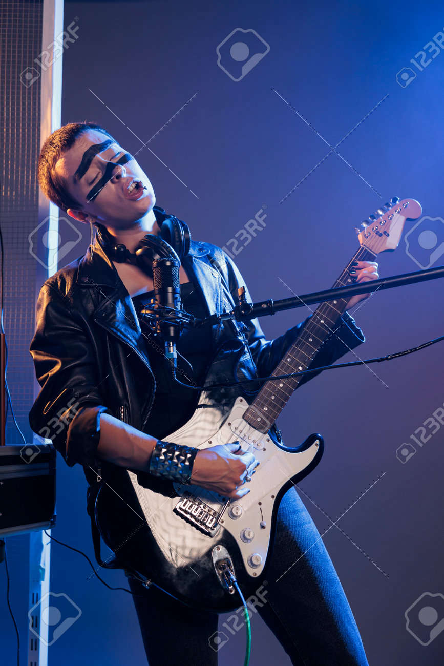 Rock Chitarrista Canta Rock Alternativo Al Microfono Immagine Stock - Immagine di pesante, esecutore: 261552201