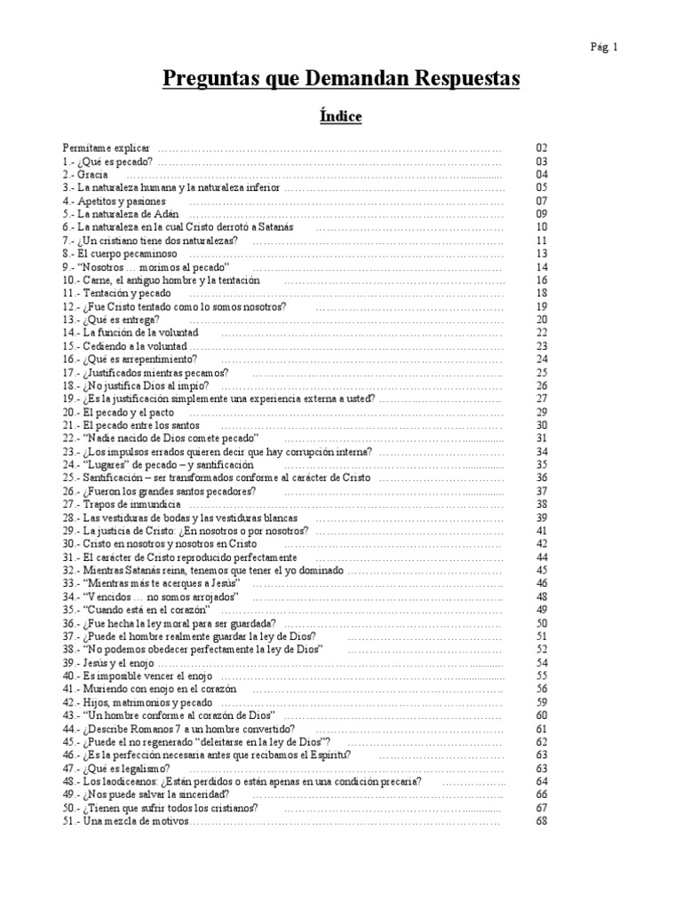 Preguntas Que Demandan Respuesta | PDF | Pecado | Gracia en ...