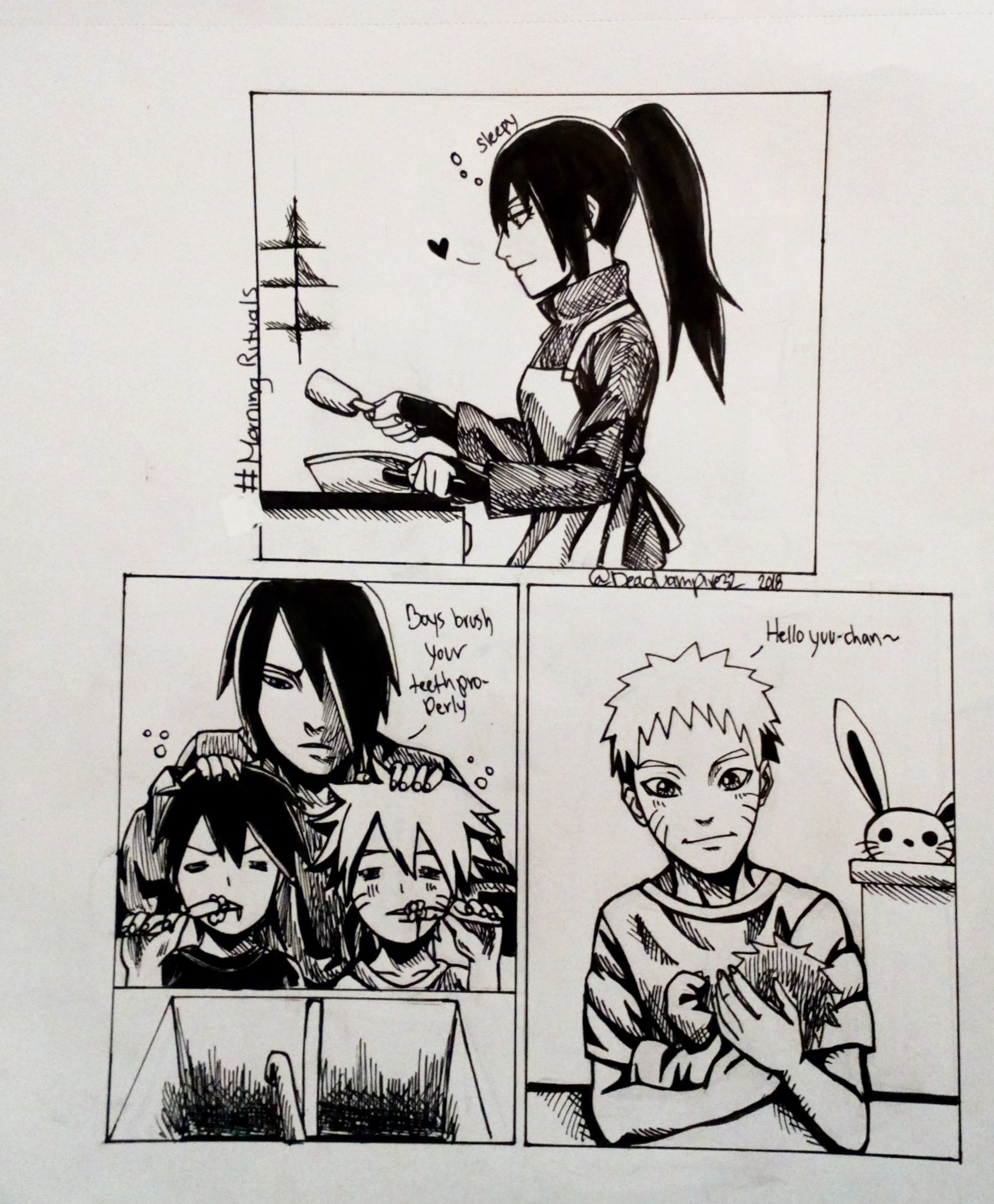 Manna-San 🍅🍥 on X: "Day 16 Morning Rituals Sasunaru Family AU Sasuke makes sure the twins wake up and get ready for school, Naruto checks on baby Yuuta and Yume makes breakfast. #
