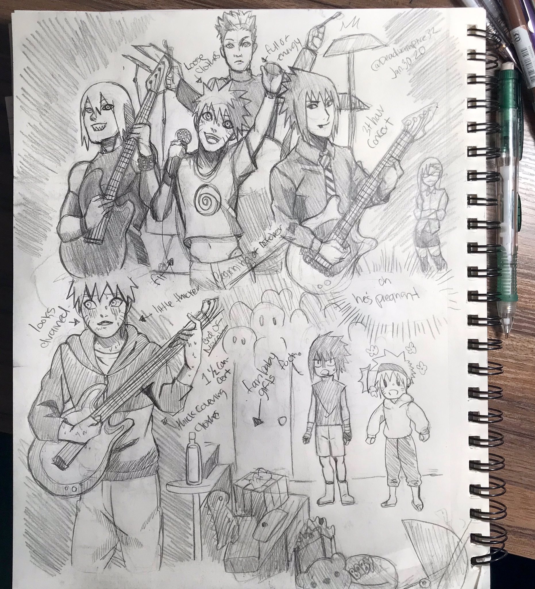 Deadvampire32 on Tumblr: Rockstar Au Naruto being on paternity leave, as he can't play in the band mostly spends his time with Sasuke after the bands...