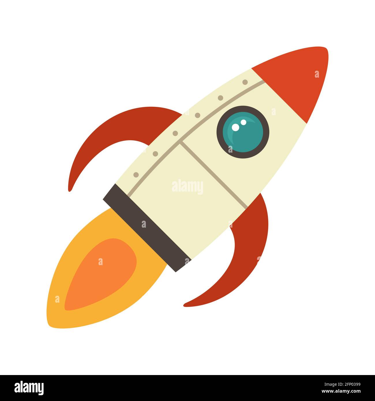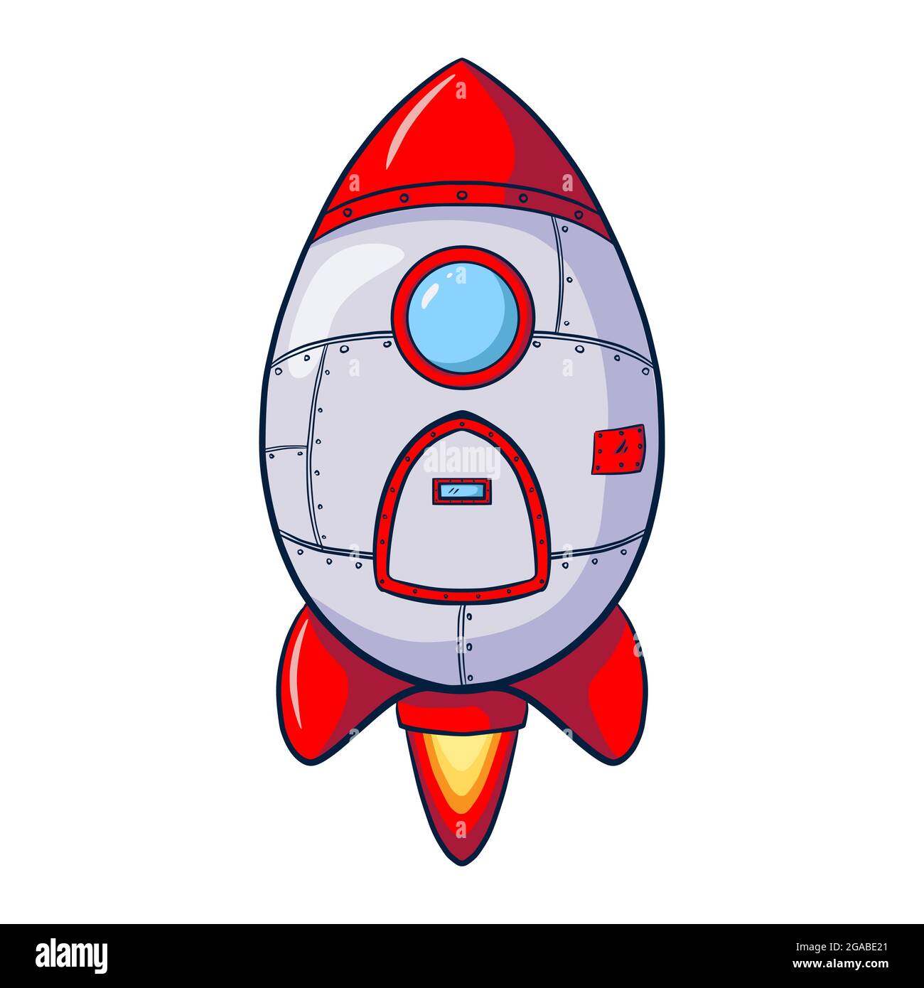 Despegue de un cohete espacial de dibujos animados, ilustración aislada. Icono de nave espacial retro simple Fotografía de stock - Alamy