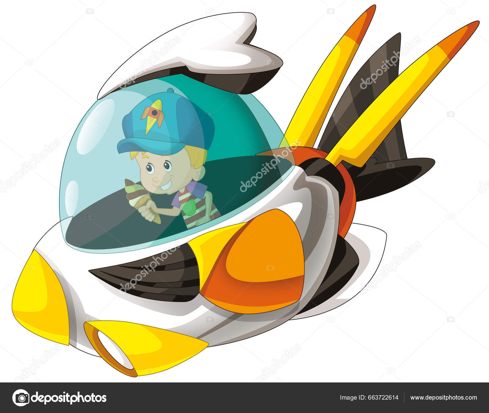 Ilustración De Dibujos Animados De Astronauta En Su Nave Espacial. Lindo Astronauta Animado. Fotos, retratos, imágenes y fotografía de archivo libres de derecho. Image 197038334