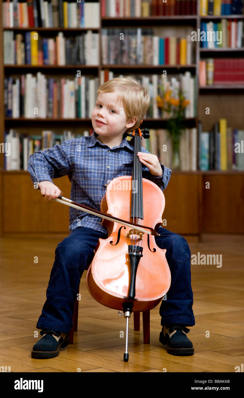 Chico tocando el violonchelo Fotografía de stock - Alamy