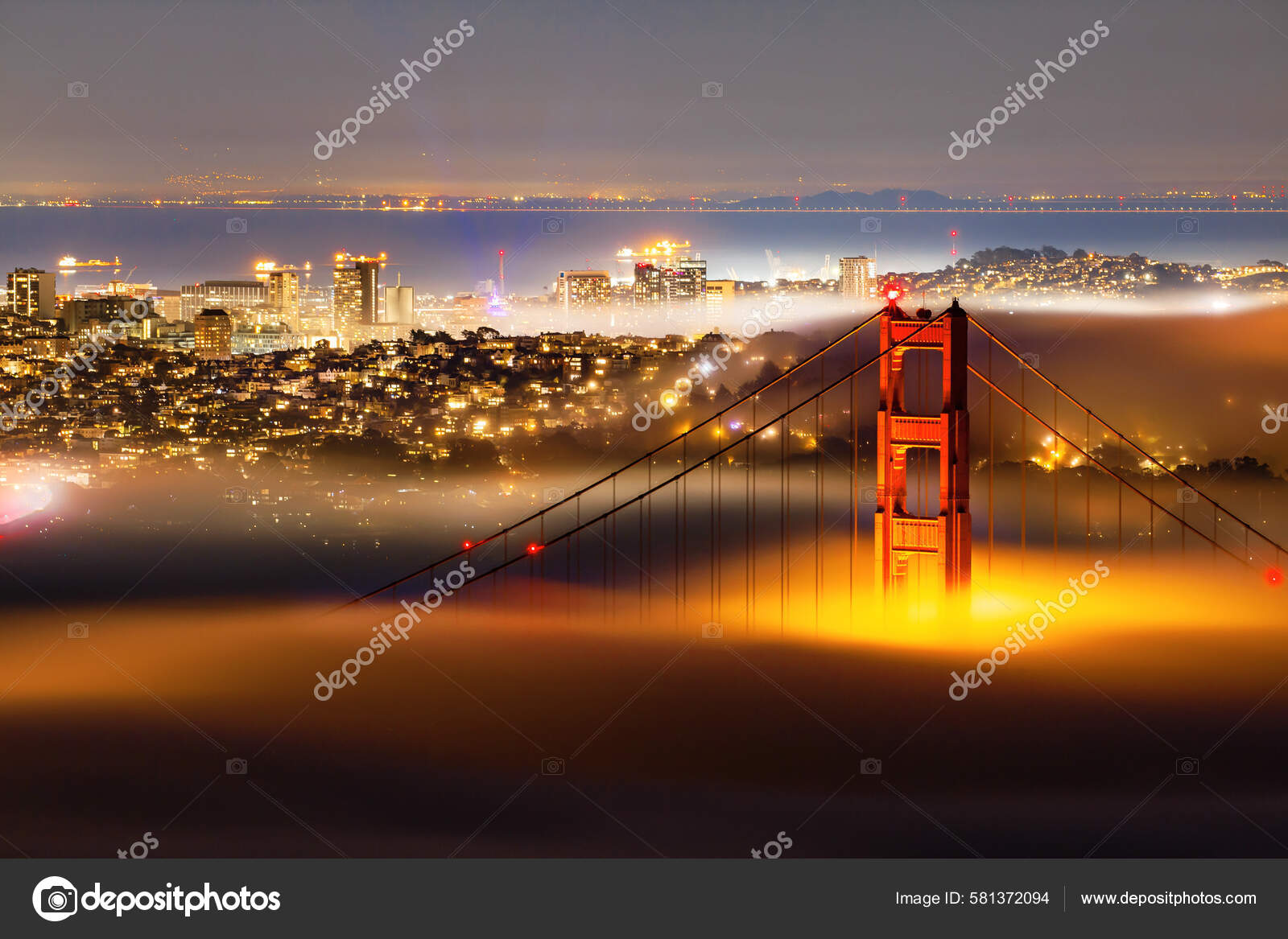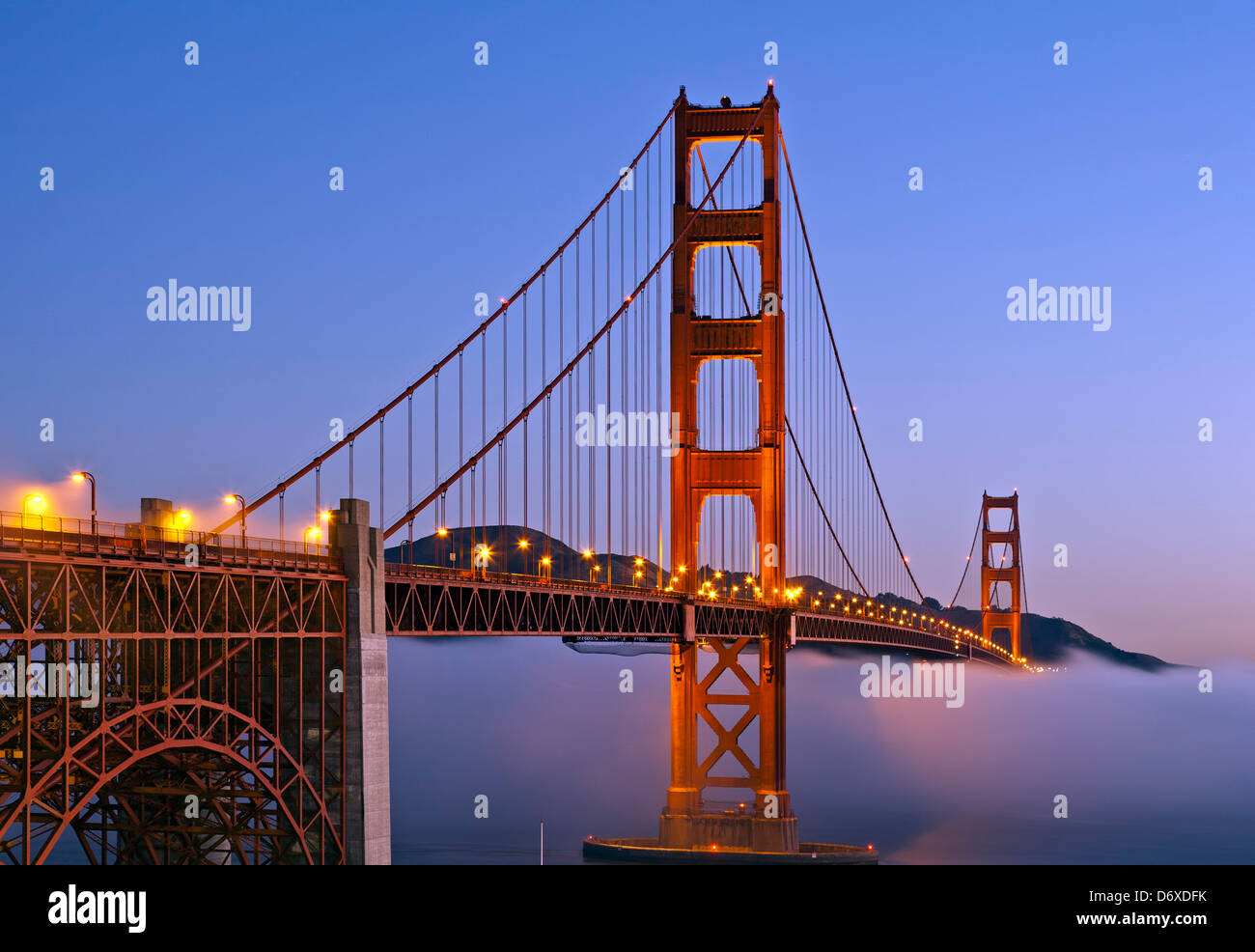 Una vista del Puente Golden Gate, como la niebla baja pasa por debajo de ella en la noche Fotografía de stock - Alamy