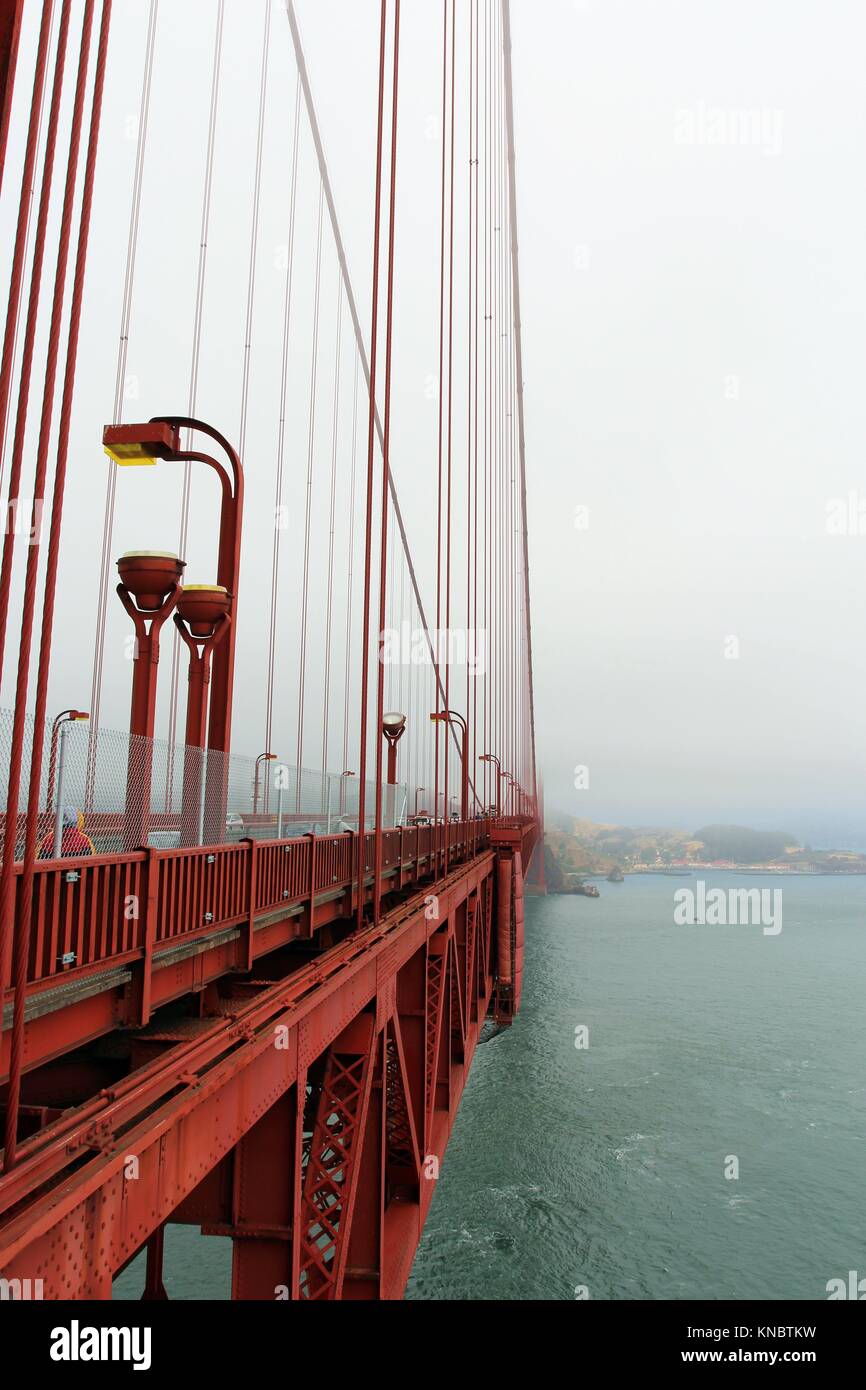 Una vista del lado del Puente Golden Gate, el condado de Marin y el Océano Pacífico desde un área de visualización en el Golden Gate Bridge en una niebla, la niebla Fotografía