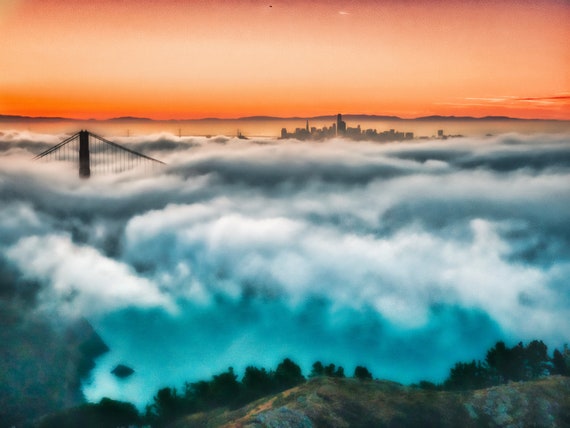 Niebla Golden Gate Bridge de San Francisco California de fotografía arte de Frisco imagen puesta de sol impresionantes colores vibrantes niebla puente Golden Gate - Etsy España