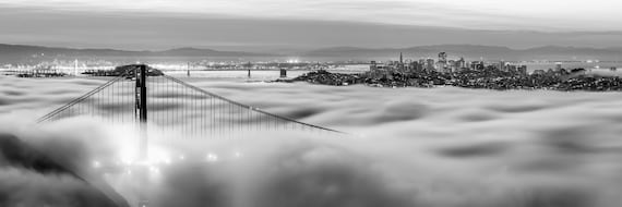 Fotografía en blanco y negro de San Francisco Impresión del puente Golden Gate Niebla monocromática de San Francisco sobre la bahía y la panorámica del amanecer de la ciudad - Etsy México