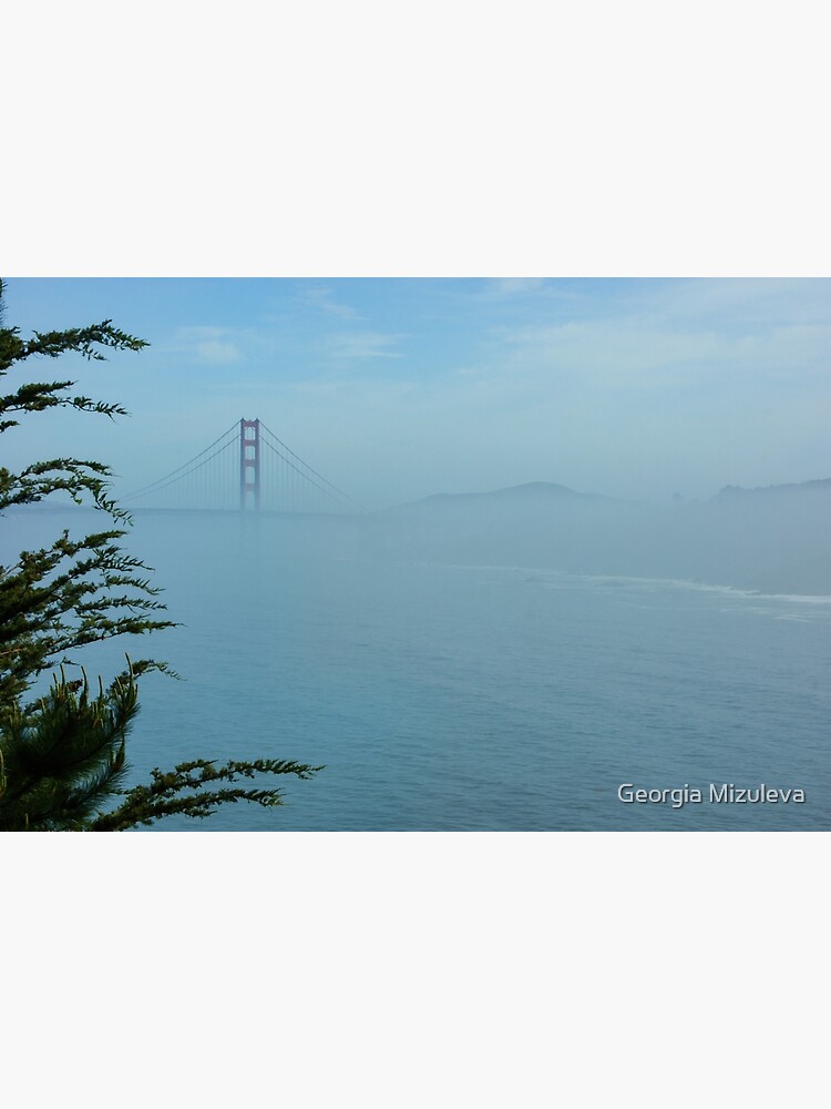 Postal for Sale con la obra «Niebla de San Francisco - Vista del Puente Golden Gate azul pálido» de Georgia Mizuleva | Redbubble