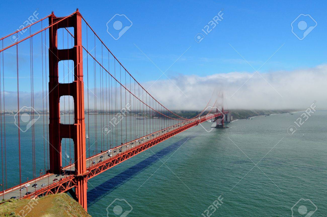 Puente Golden Gate San Francisco En Un Día Azul Del Cielo Con Niebla Imagen de archivo - Imagen de torres, azul: 159541749