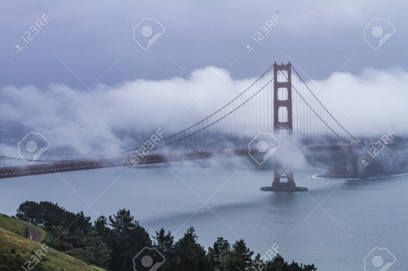 Puente Golden Gate En San Francisco California Niebla Por La Mañana Con Nubes Bajas De La Bahía Fotos, retratos, imágenes y fotografía de archivo libres de derecho. Image 56511491