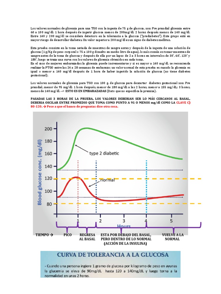 Los Valores Normales de Glicemia para Una TGO Con La Ingesta de 75 G de Glucosa | PDF