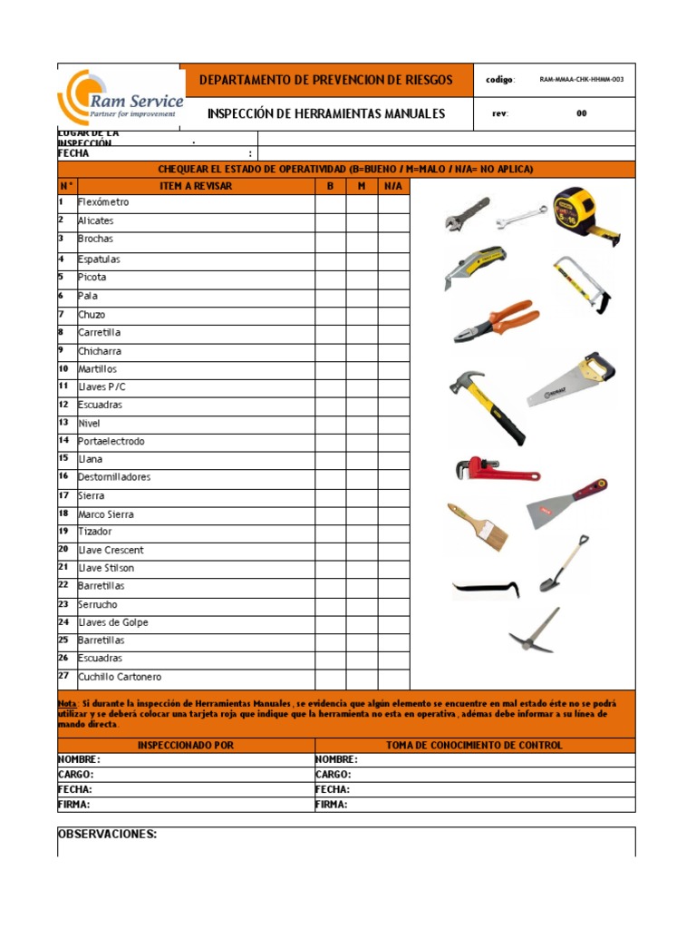 RAM-CHK-003 Check List Herramientas Manuales | PDF
