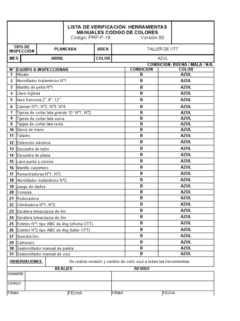 Descarga Check List de Herramientas Manuales - Material ...