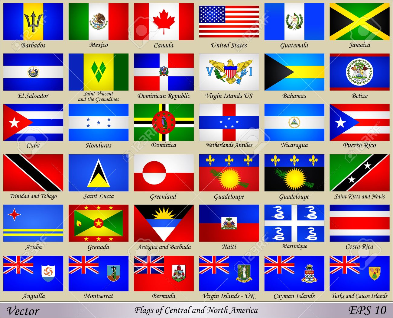 Banderas De Centro Y Norte América Con Nombres De Países ...
