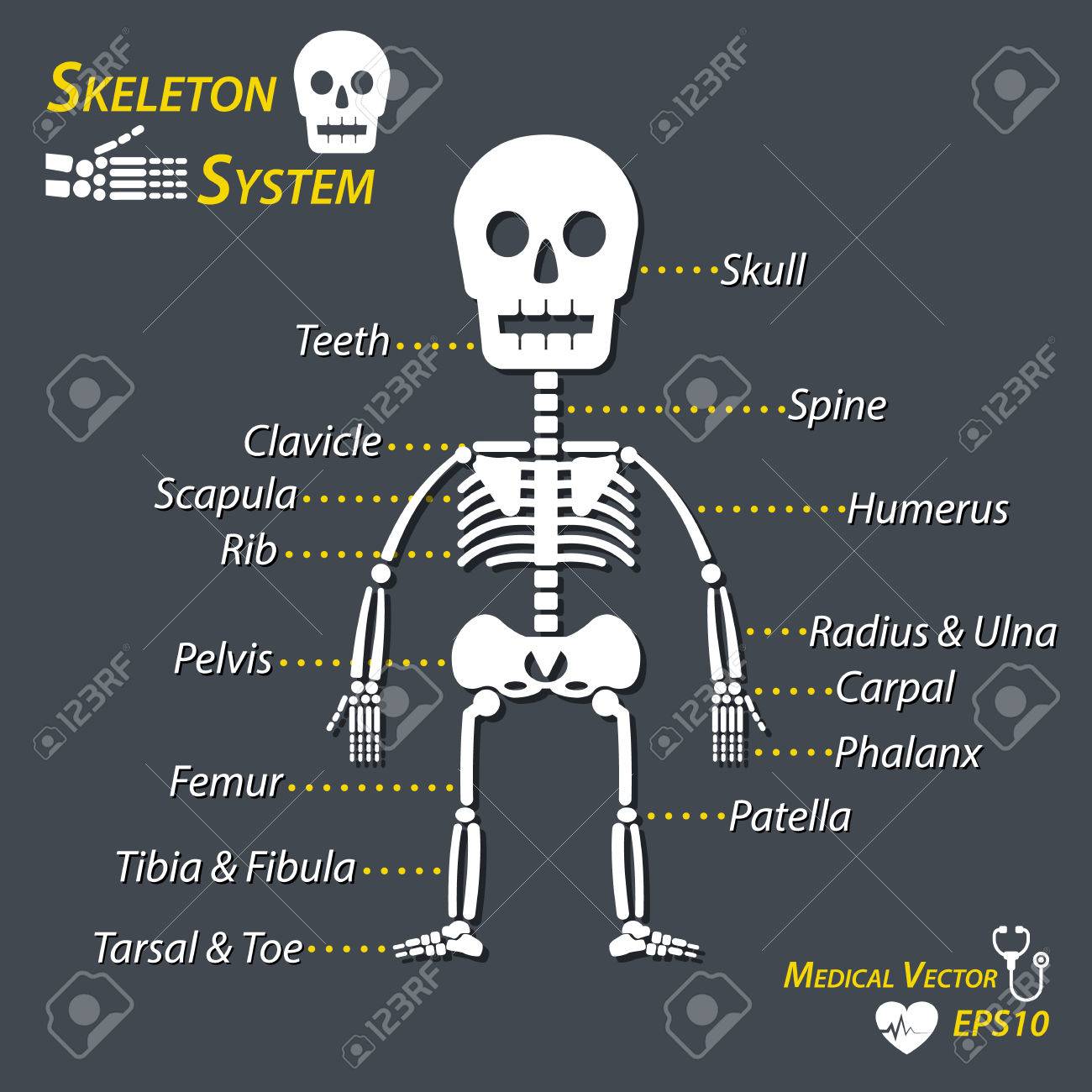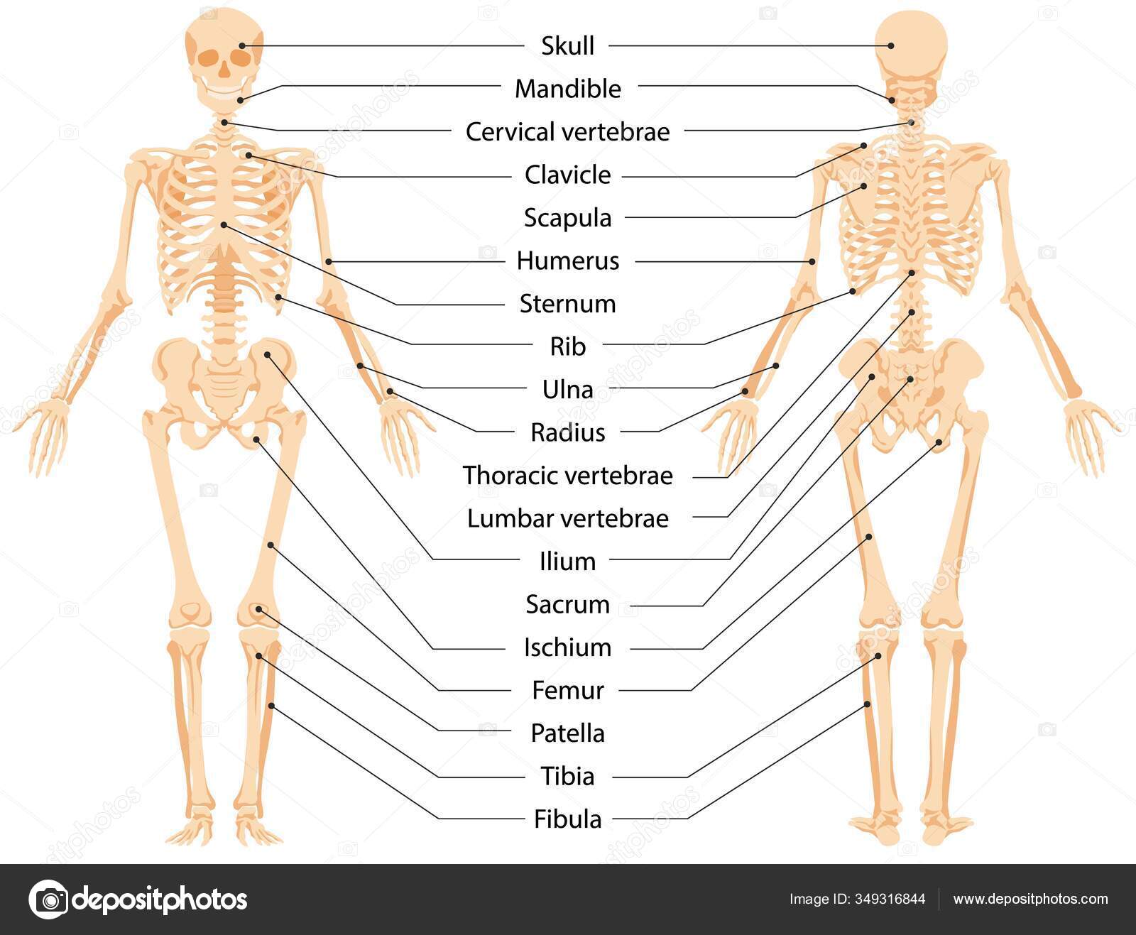 Esqueleto Humano Esqueleto Gráfico Del Sistema Esquelético Nombres De Huesos Etiquetados Ilustración del Vector - Ilustración de medicina, hueso: 232009938