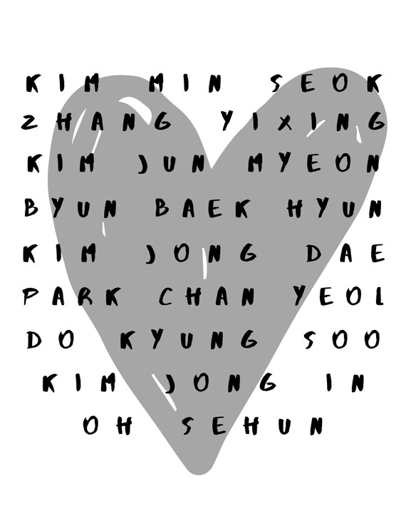 EXO Nombres de Miembros Arte de Pared, Nombres de Miembros de Kpop, Cartel, Arte de Pared, Kpop, Kdrama, Impresión digital instantánea, Arte descargable - Etsy México