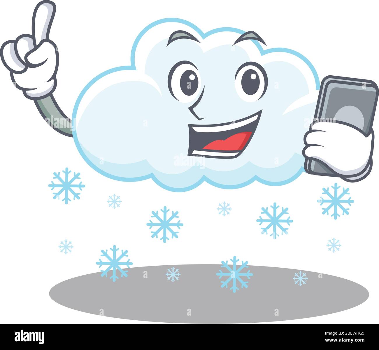 Personaje de dibujos animados con nieve en la nube hablando por ...