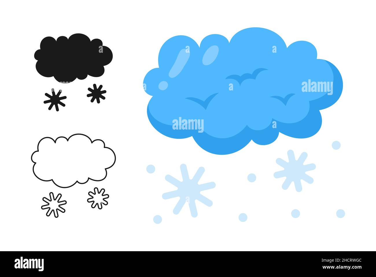 Nieve De Nubes De Invierno, Estilo De Dibujos Animados De Copos De ...
