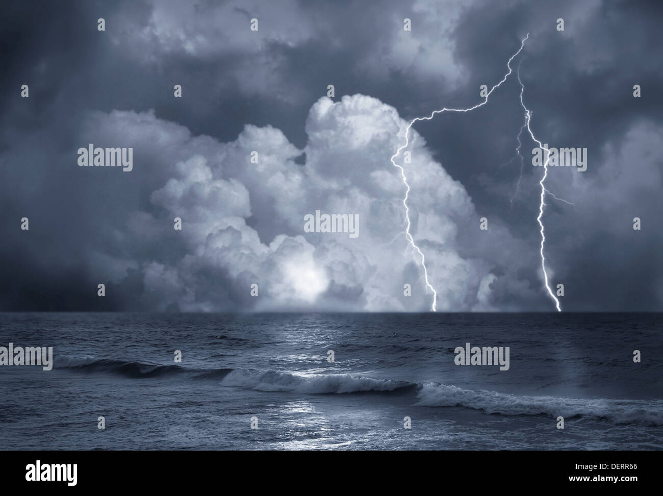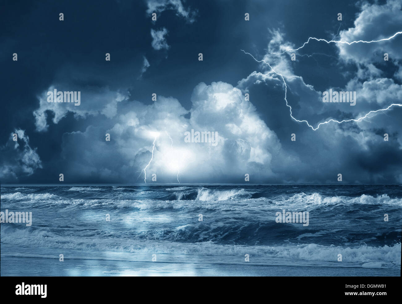 La tormenta en el mar con relámpagos sobre fondo de nubes Fotografía de stock - Alamy