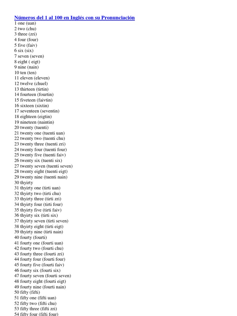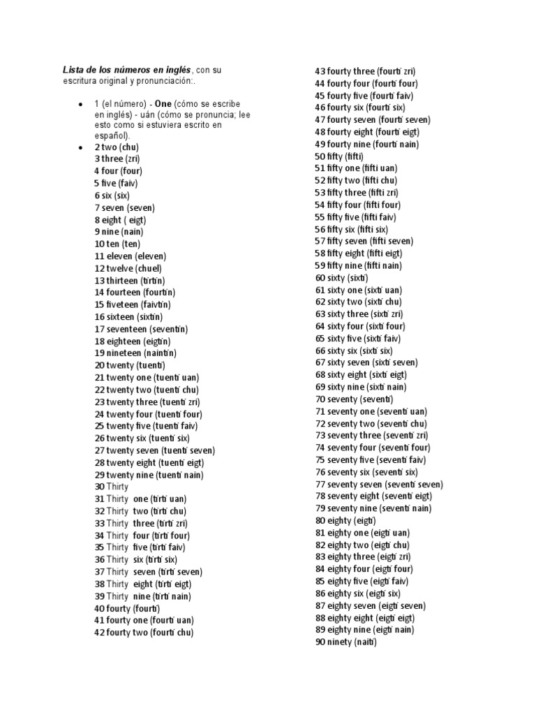 DOC) 19AGO14 NUMERO INGLES PRONUNCIACION 1-50 | Ciber Web - Academia.edu
